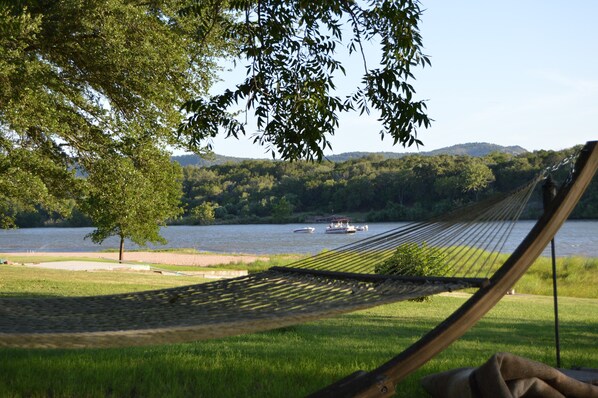 Barna dine vil elske elven med sin sandbunn. Flommen endret elva noen, men det er fortsatt 4-5 meter vann foran huset vårt, og en stor "øy" rett overfor oss som sannsynligvis er 1-2 fot dyp for de små. Ta stolene i vannet, eller på strandområdet rett foran eiendommen, og nyt en drink. Llano-elven strømmer inn til innsjøen LBJ og forblir derfor på et ganske konstant nivå. Slip jetski i vannet på fellesskråningen noen miles sør for huset, og slipp deretter anker i det grunne området foran huset og nyt det hele dagen. Vi har også to kajakker, en enkelt og dobbel, mange flyter og nok redningsvester for å sikre at alle er trygge.