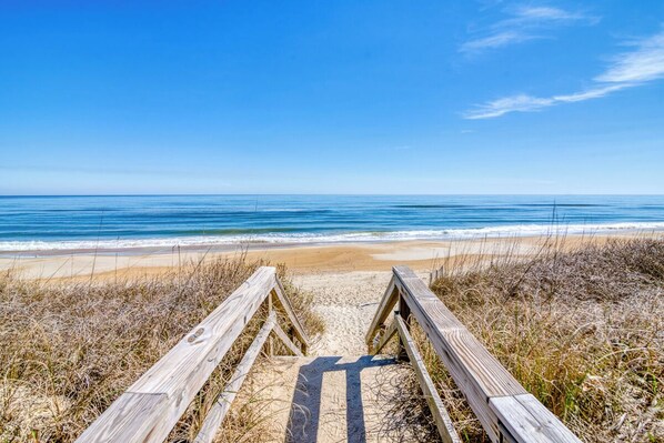 Enjoy the sunrise and peaceful ocean views from your private balcony in this second floor condo. LV Duck is a well-maintained, semi-oceanfront condo, in the perfect location for your family vacation, just 170 feet from the nearest beach access. This unit has excellent views of the pool and ocean.