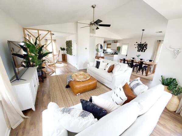 ✓ Living Room with 65" Flat Screen TV With Netflix & Amazon TV!