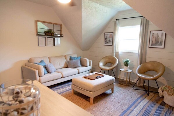 Calming Terracotta Chateau is another #QBRenovations project located 3 miles from downtown Gay Street, Market Square and Neyland Stadium. ☆ Close to South Press Coffee, HoneyBee Coffee, downtown breweries, and restaurants. ☆ 1 Mile away from Fort Dickerson Park walking trails ☆ Neyland Stadium football games just 3 miles walk away ☆ Free Private Parking ☆ Washer/Dryer The Charming Terracotta Chateau greets you with a colorful terracotta door, and opens into a stylishly decorated space that is entirely for your use during your stay! This upstairs 2 bedroom, 1 bath upstairs apartment for four is one of 4 apartments in this quadplex property. There are no shared spaces among the units. It boasts a cute little kitchen, fully stocked with all the cookware, dishes and utensils you’ll need for an evening in and a home cooked meal. Full sized stainless steel kitchen appliances are also included. You will find the two comfortable queen beds with quality sheets and bedding to be a welcome place to rest your head at the end of a long day of exploring, hiking or shopping. Don't have big plans tomorrow? Close the blackout curtains and turn on the sound machine to get a little extra shut eye. In the living room, cozy up on the sofa with a blanket and watch television from the smart TV. You will log in to your own favorite streaming app subscriptions and enjoy a relaxing evening in. Make yourself at home in our private apartment. We can't wait to host you! Short drive to points of interest: Dunkin' Donuts 1.4 miles Arby's 1.4 miles Planet Fitness 1.2 miles Fort Dickerson Quarry and Trails 1.7 miles Honey Bee Coffee Co. 2.3 miles South Coast Pizza 2.6 miles Southside Garage (food/drink) 2.6 miles Alliance Brewing Co. 2.7 miles Hi-Wire Brewing Co. 2.5 miles Balter Beerworks 2.8 miles World's Fair Park 2.5 miles Knoxville Convention Center 2.5 miles Market Square/Downtown Hub 3 miles Knoxville Civic Auditorium 2.8 miles Neyland Stadium 3 miles University of Tennessee 3 miles Private parking area next to the house: Each 2 BR apartment has 2 dedicated parking spaces, and each 1 BR apartment has 1 dedicated parking space. The parking spaces are numbered according to the apartment, so unit #4 will park in the spaces with a number 4 on the posts. I try to give guests their space but I am typically available, if needed. One of 4 apartments housed within this quad-plex home in South Knoxville. Less than one mile from Chapman Highway and 2.5 miles from the Sunsphere, this newly renovated home sits within a quiet up and coming, working class neighborhood. There is private parking located along the side of the property for your car. However major car sharing services, such as Uber or Lyft, are easily accessible and can take you almost anywhere downtown in 10 minutes or less. **This is an upstairs apartment. There are 2 steps up onto the front porch, and 15 steps up to the 2nd level where the apartment is located, at the far end of the hall. **There are train tracks a block away. We've not received complaints from guests, but a sound machine is provided for guest use, if needed. There are also some great 8-10 hour sleep sounds available to play on your phone from the YouTube app that may better suit your tastes. **Angled ceilings are a part of the anatomy of this space. If this would prove to be an issue for you, this apartment may not be the best fit. **This property is located in a safe, quiet, "regular Joe" working class neighborhood. **There is a ditch along the street front portion of the property. Watch your step! **No pets or animals allowed, No smoking of any kind permitted and No parties or gatherings. **There is no paid cable or paid streaming app service for TV viewing. You will need to log in to your own streaming app subscriptions to watch television. There are also some free viewing options in the menu.