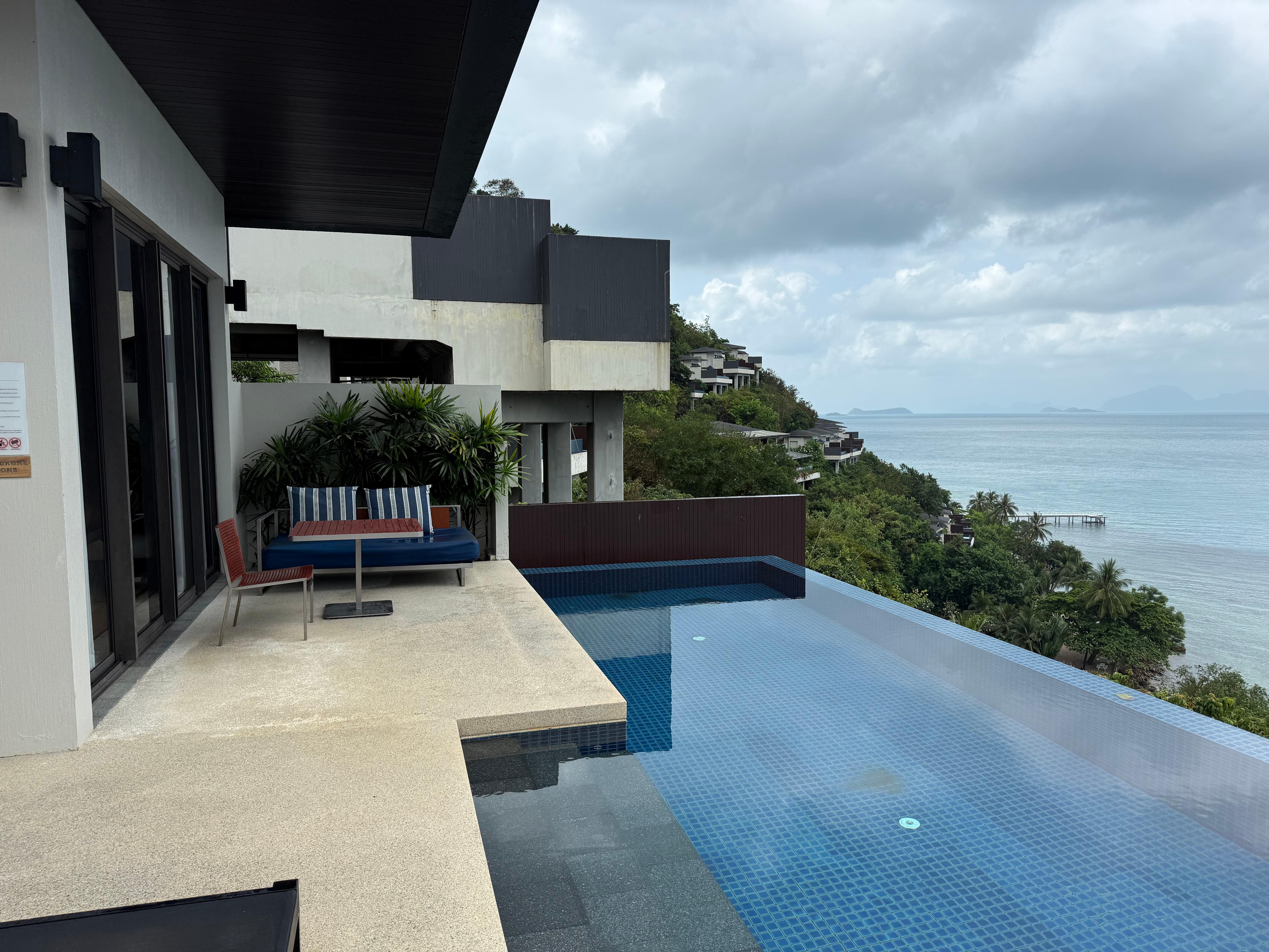The view and the breakfast service get 5 stars. The view and the setting will take your breath away. The food and service at the breakfast was perfect every time! We also enjoyed the food and the staff at the Azure restaurant. We didn’t try the other restaurants. The hotel management fell short. First, we booked what they call a “1 Bedroom Five Island Villa with private pool”. The villa and the view were beautiful BUT this is NOT a 1 bedroom villa. There are only two rooms— a large bedroom with a small sitting area and tv (the TV doesn’t tilt towards the bed so you can’t watch TV from your bed) and a beautiful and large bathroom/closet. I paid about $125 per day extra for my son to get a rollaway bed and breakfast (which was included for only 2 people). I was surprised when I walked in the room and saw the rollaway placed right next to our bed because despite being advertised as a 1 bedroom villa, there wasn’t a separate living area for the rollaway. Also, at turn down, we only received two cookies or treats despite being 3 people- not a huge deal but a notable shortfall. One day, the hotel closed the pool and one of the 3 restaurants to hotel paying guests for almost all day so they could host a wedding. It seemed unfair to paying guests to be inconvenienced during a high season so the hotel could double dip and host a wedding. When we wanted to eat dinner only the Thai restaurant was open due to wedding events and the steakhouse being too busy to accommodate hotel guests un