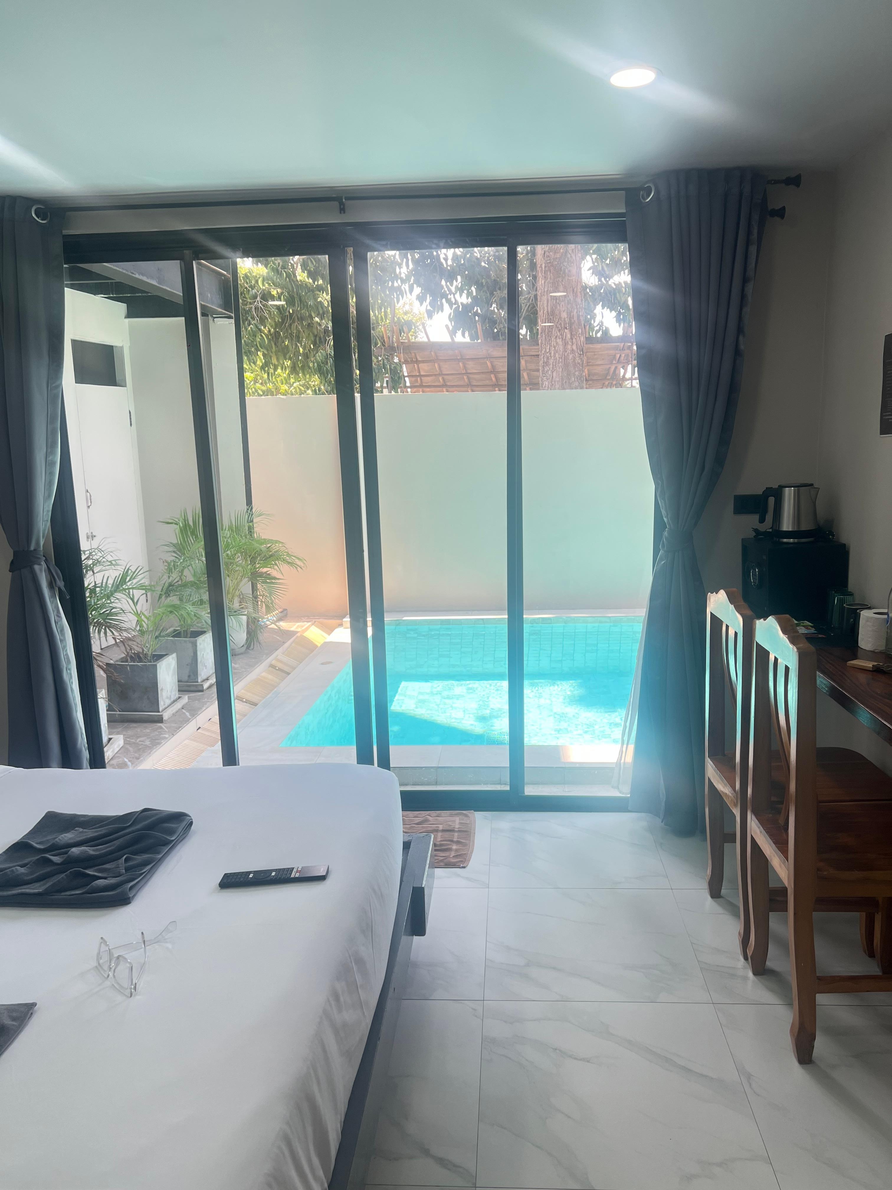 Nice spacious, clean room with fabulous aircon and fan. Pleasant staff. Great pool. Fabulous location to visit the Fishermens Village night market (50 meters). Cheap tariff.