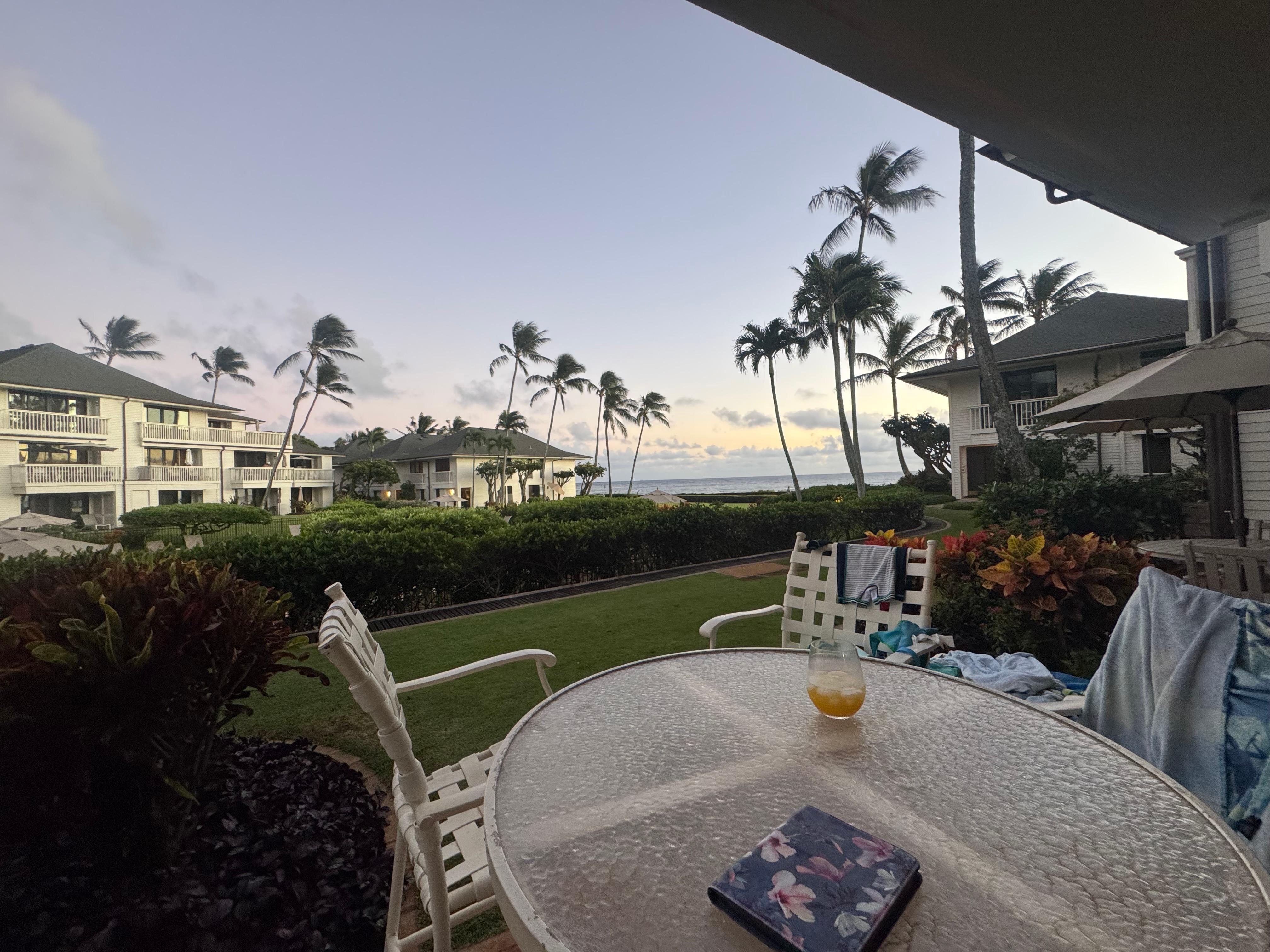 This was our first visit to Kauai and we couldn’t have chosen a better location or accommodations. The condo was beautifully appointed with a well equipped kitchen and stunning views from the lanai and master bedroom. Just a few steps from the lanai provided awesome sunsets every evening over the gorgeous ocean. The pool was also just steps from our lanai, and was so refreshing, and never crowded. We highly recommend this condo and look forward to returning in the future.