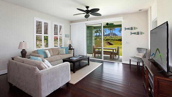 Denne sentrale Poipu-beliggenheten tilbyr hav, golfbane og fjellutsikt, og ligger innen gangavstand fra flere restauranter, shopping og underholdning i Poipu Shopping Village og kort vei til verdensberømte Poipu Beach.