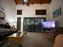 This is just a really cool place. We love the layout, the vaulted ceilings and the peaceful stream running right past the lanai. The location is good except there is a lot of road noise, you really can't leave the bedroom windows open at night. I have read a lot of negative reviews so I want to leave a very honest one, we didn't know what to expect when we got here. We love the condo! I would buy this condo, but I would buy it knowing that it has a ton of potential with some cosmetic updating. The kitchen is beautiful although the appliances need some TLC. The dishwasher really doesn't clean well at all so you have to wipe the dishes with soapy water before you ever put them in the dishwasher. The carpet is old and dirty. The bathrooms are extremely outdated and dingy. The fan in the master bathroom does not work and the dryer is vented into the attic so all the heat comes right back into the bathroom. The bathrooms did look like they had been well cleaned. The beds are definitely old and need to be replaced, someone has put a pad on the master bed but it really doesn't take away from how hard the bed is. The roof does NOT leak and the windows and screens are all in good shape. However, there are some cockroaches and bugs. We were told they had recently sprayed. The management company was really good to work with, they were very responsive when we called them about a few issues that we had. They immediately brought over a set of brand new frying pans for us!