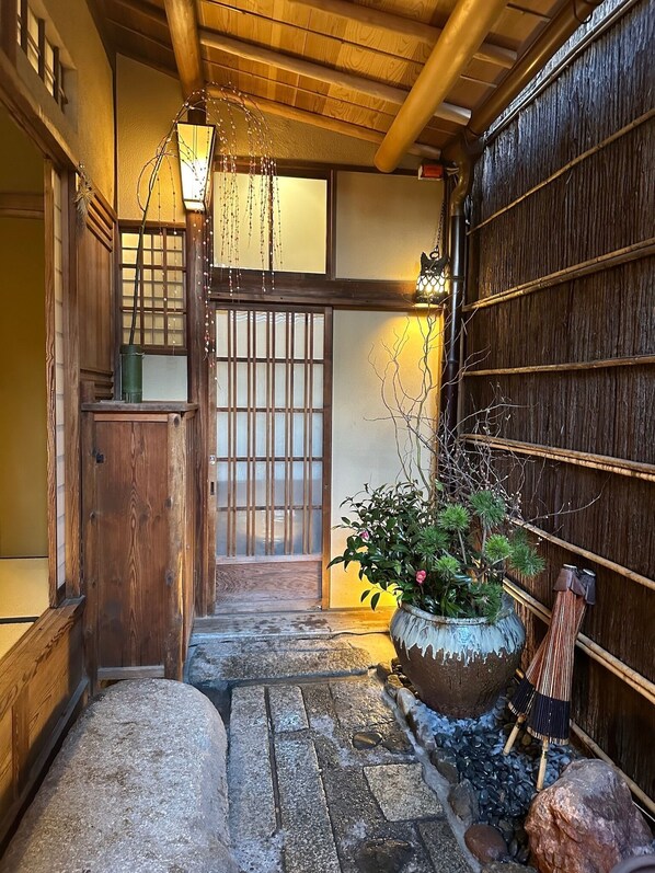 The room is a special maisonettetype room with a private garden and a cypress bathtub The room is / Kyoto Kyōto