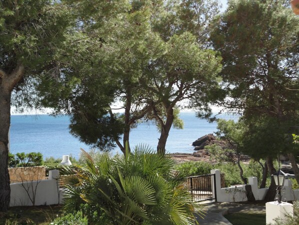 Utenfor finner vi en terrasse med møbler, en hage med felles svømmebasseng og en grill som lar oss nyte det når som helst på året. Et sett med bord og stoler lar oss lage måltider utendørs. Huset har fantastisk utsikt over havet, hvor du kan komme deg fra huset.