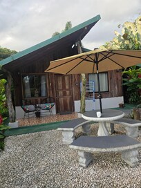 The outside of the mini house was beautiful with two chairs you could sit on and enjoy the morning or even afternoon. Inside was big enough for our family. We were able to cook some of our meals and the rest we enjoyed out on the beautiful town! The rooms were comfy and the bathroom was big to accommodate our family. The host we saw pretty much every day an always greeted us with kindness. Everyone here was always so nice. I love that this house was in walking distance to the town of La Fortuna. We were able to easily walk any where we wanted.