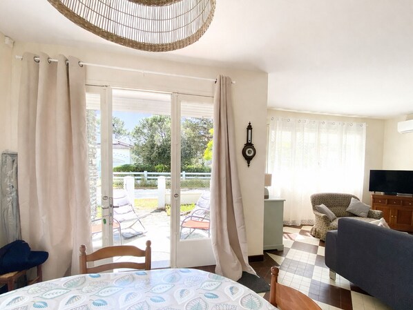LA TRANCHE SUR MER, La Grière, vacation home for 6 people, in a pleasant setting, just steps from the beach. Living room, small kitchen, hallway leading to 3 bedrooms, each with two 0.90 cm beds (wardrobes and wardrobes). Separate toilet, bathroom (shower, sink). 500 m² of land. 1 parking space. Decorative fireplace only.