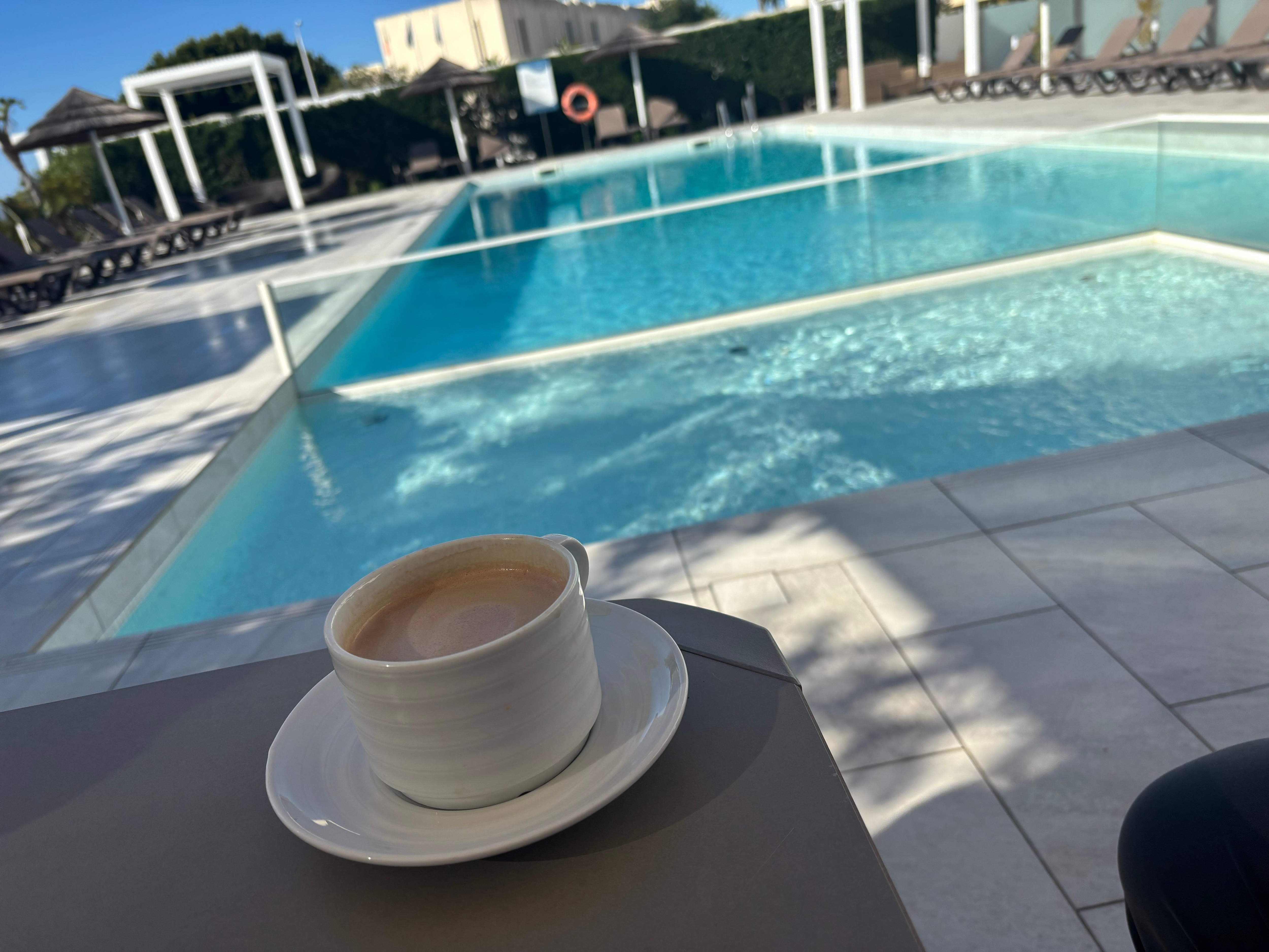Clean room with an ocean view, very helpful staff, tasty breakfast and even a complimentary drink!
