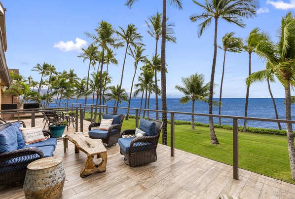 Føl den innbydende spritten til havet og Hawaii i det øyeblikket du åpner døren inn i dette rolige hjemmet ved havet. Bella Mare (Beautiful Sea) Home vil garantert forbløffe deg på alle måter! La dette være drømmenes ferie. Dette er et nyoppført hjem med 2 soverom og 3 bad som ikke har spart noen utgifter. High-end kunstneriske møbler og dekor gjør dette hjemmet luksuriøst for ferien. Den tropiske øya fra Hawaii-stemningen til dette hjemmet er akkurat det du leter etter i din Maui-ferie. Når du går gjennom inngangsdøren, vil du føle brisen og se den pittoreske utsikten over bølgene som styrter i land. Sjekk surfen, se hvalbukse fra desember til mai, padlebrett, surfe, kajakk, folie eller snorkle rett hjemmefra. Vi ligger Ocean Front, få skritt fra vannkanten, holder oss i skyggen på den romslige Lanai eller støtter en stol oppe i gresset ... hva med å henge strandhengekøye fra de perfekt avstand kokosnøttrærne ved siden av vannet og lese en bok eller ta en lur. Gå aldri glipp av en solnedgang mens du nipper til en cocktail og støtter føttene opp.