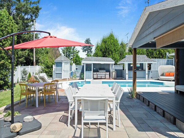 Searching for a mid-sized family getaway in the City of Lake Geneva that checks all the boxes plus some? Introducing The Cabana! Located on a quiet street just over a mile from the Downtown district and famous Geneva lakefront, guests will enjoy a convenient, yet private location to access all the area attractions. The amenities offered here are tough to beat- step out of the rear slider and be greeted by an impressive back yard oasis highlighted by a heated salt water pool, an array of seating (including an outdoor dining table that can fit 8+), and even an outdoor kitchen and bar with TV! The covered porch is a great place to relax on a summers' night. This outdoor space is truly entertainers dream during the warmer months of the year, and staying home for the day has never been more tempting.