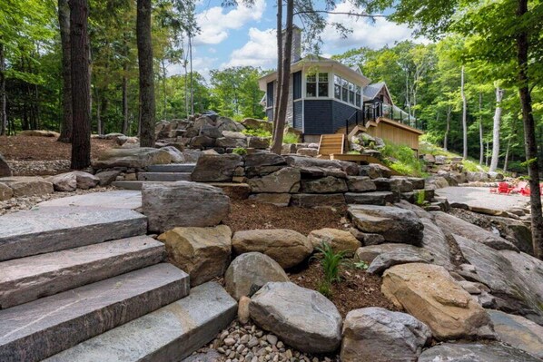 Muskoka, Lake of Bays, Bigwin Island. Come enjoy beautiful morning sunrise, stars at night, marshmellows on open firepit, and wildlife. 3,000 square foot custom built cottage on Lake of Bays 4 bedrooms, 2 main fireplaces , 3rd fireplace in master bath, great room, living room, large kitchen with commercial grade stove, pantry, dock with sitting area, Large deck, Kayaks, Walking trails, Tennis courts, Pickelball court, Basketball court, fishing and and swimming at cozy beach. Limited golf availability at Bigwin Island Golf Club, one of Canada's top private golf courses. Pet friendly, Minimum stay is 2 weeks.
