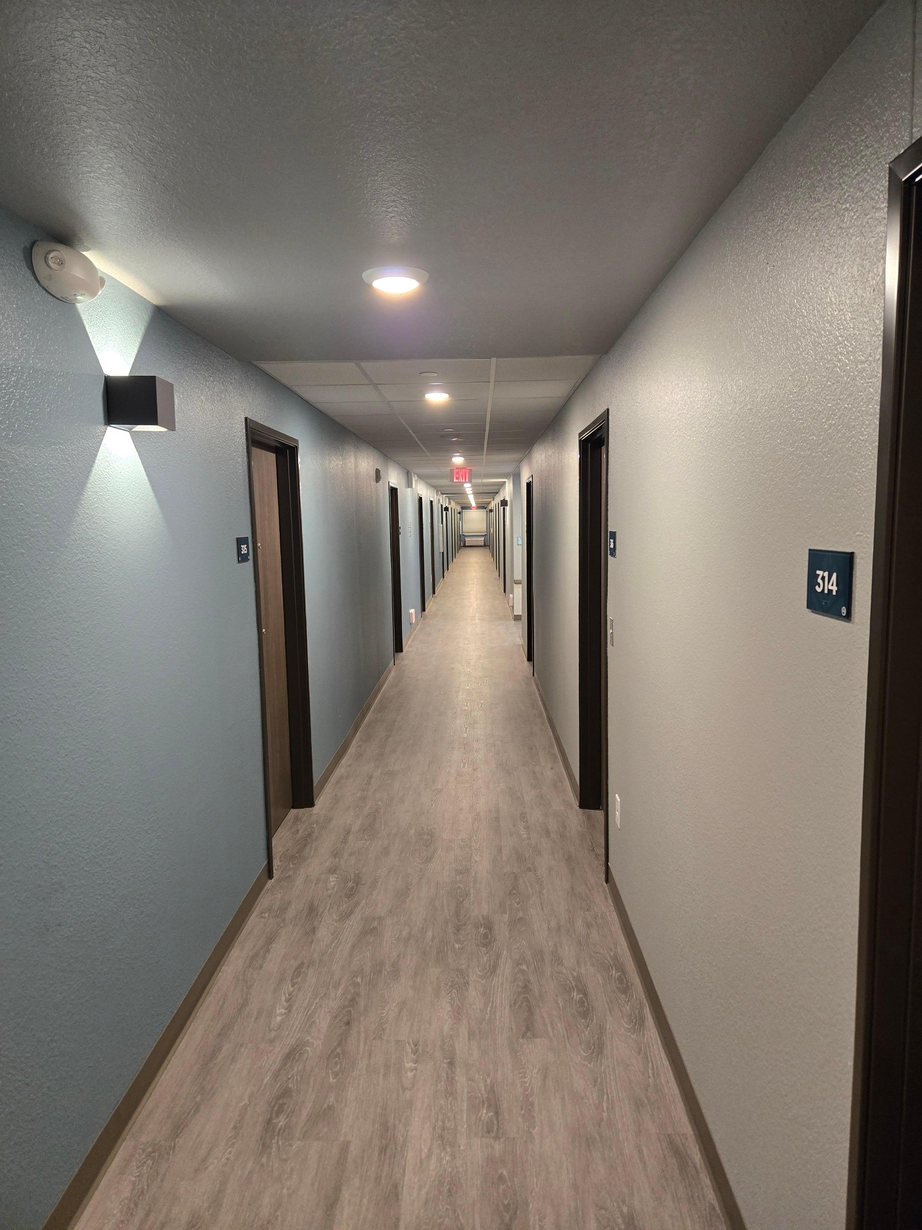 The staff that we met were cordial and completed their tasks well. We just couldn't figure out the whole premise of this hotel. The building was stark and felt like a college dorm. (It sounded like it as well, since we could clearly hear the occupant above up tromping around at 3am. Guests are instructed to put their used towels into the laundry basket provided and take them to the front desk for fresh replacements. The refrigerator in our room was so loud, we needed to turn up the volume on the TV to compensate. (On a positive note, it did mask the noises from the other rooms.) This property seems to cater to construction workers who are in the area during the week. The parking lot seemed less occupied on the weekend. We should have done more research. I did NOT feel it was a good value. Again, the STAFF was nice. The front desk is not occupied overnight.