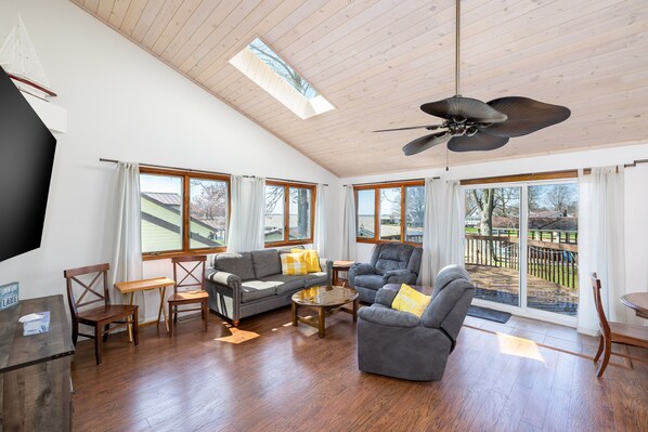 We had so many memorable times in this beautiful lakeview property and spacious home. The bedrooms and living spaces met all of our needs. We were in the house more than anticipated because of daily thunder storms, but had lots to do. Cooking for a group of 9 was challenging with the kitchen amenities provided (i.e. pans/cooking sheets are spent and need replacing, no kitchen scissors, BBQ brush had no bristles, only 1 sponge with a scrubber provided which was used to clean the BBQ grates, only 3 steak knives – need a set of 8 for a house this size, paper towels not provided). The basement bathroom toilet wobbles, but still works. The backyard dock area was stinky b/c of a few dead fish, but the rest of the yard was comfortable and big enough for our group. Working with John was great. He was very responsive, especially when the power went out at midnight Saturday, Ohio time! Check-in/out instructions were easy to follow. Overall we had great family time!