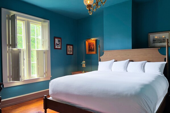 * Mange gjenopprettede originale detaljer, inkludert unike, tre-foldede skodder som brettes inn i veggen når de er helt lukket