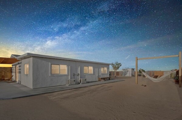 Conveniently located just a short distance from Joshua Tree National Park, you'll have easy access to hiking, rock climbing, and exploring the natural beauty of the area. And when you're ready to relax, come back to your own private oasis and enjoy the serenity and peace of the desert in a comfortable home.