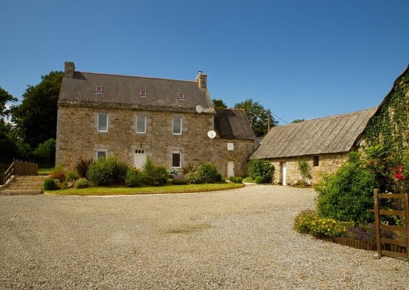 Vårt nylig renoverte våningshus er ekstremt romslig og tilbyr komfort i hjemmet. Privat basseng. Spillrom. 3 dobler, 1 tvilling og 1 køyeseng. 3 bad. Stort familiekjøkken. Hotellet ligger over en hektar stort område, og er rolig og tilbaketrukket. Perfekt sted for å utforske hele Bretagne.