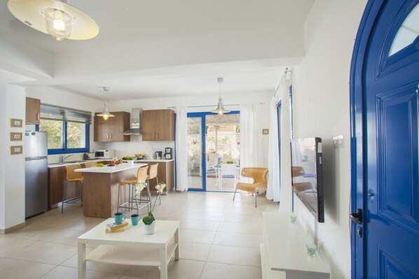Villa med kjøkken og møblert balkong eller terrasse i Paralimni