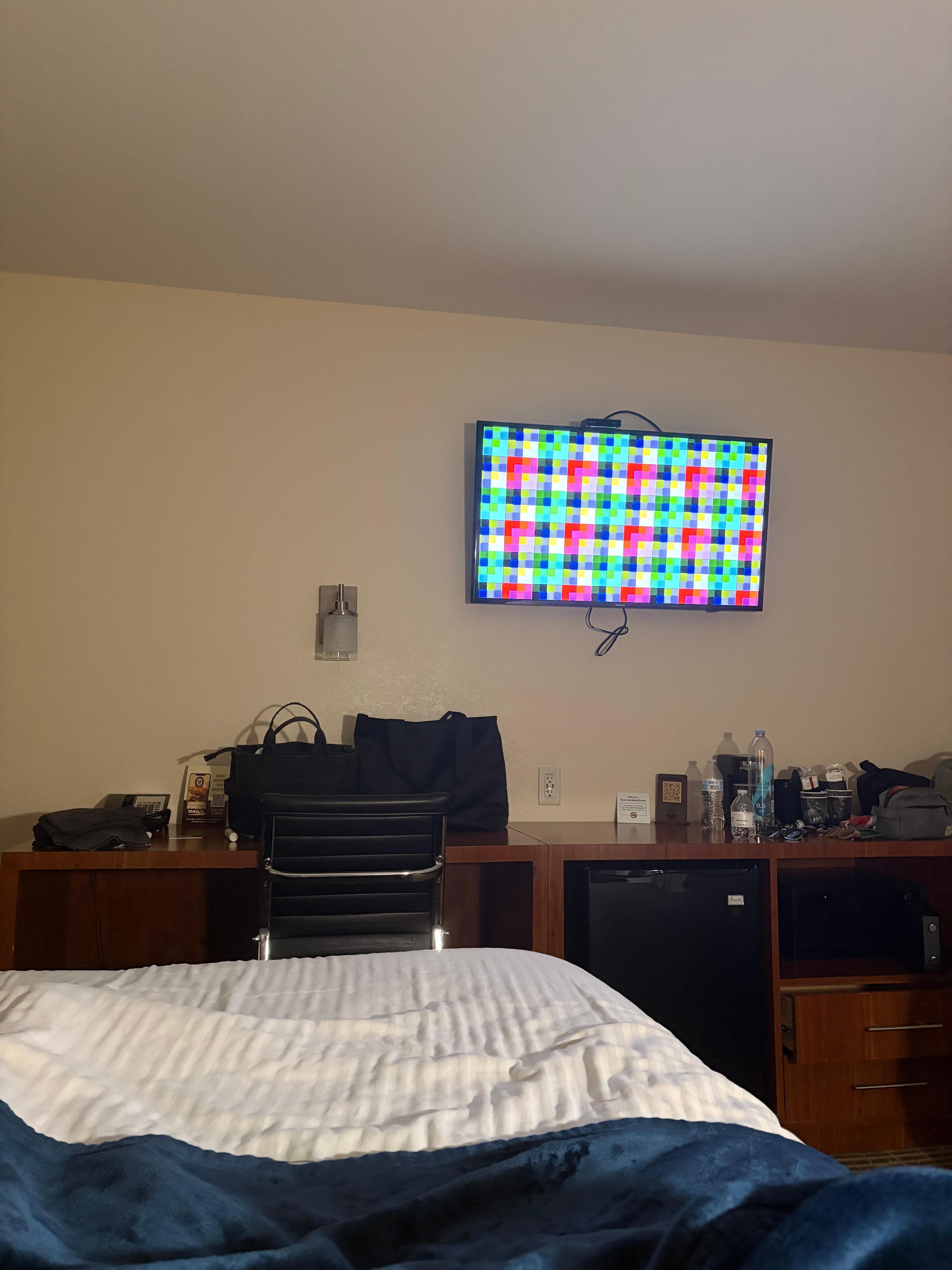 Room was not that clean. Leftover stuff in the fridge from previous guest and glitter all over the floor. The tv didn’t work and the AC sounded like a jet plane taking off - you get what you pay for!