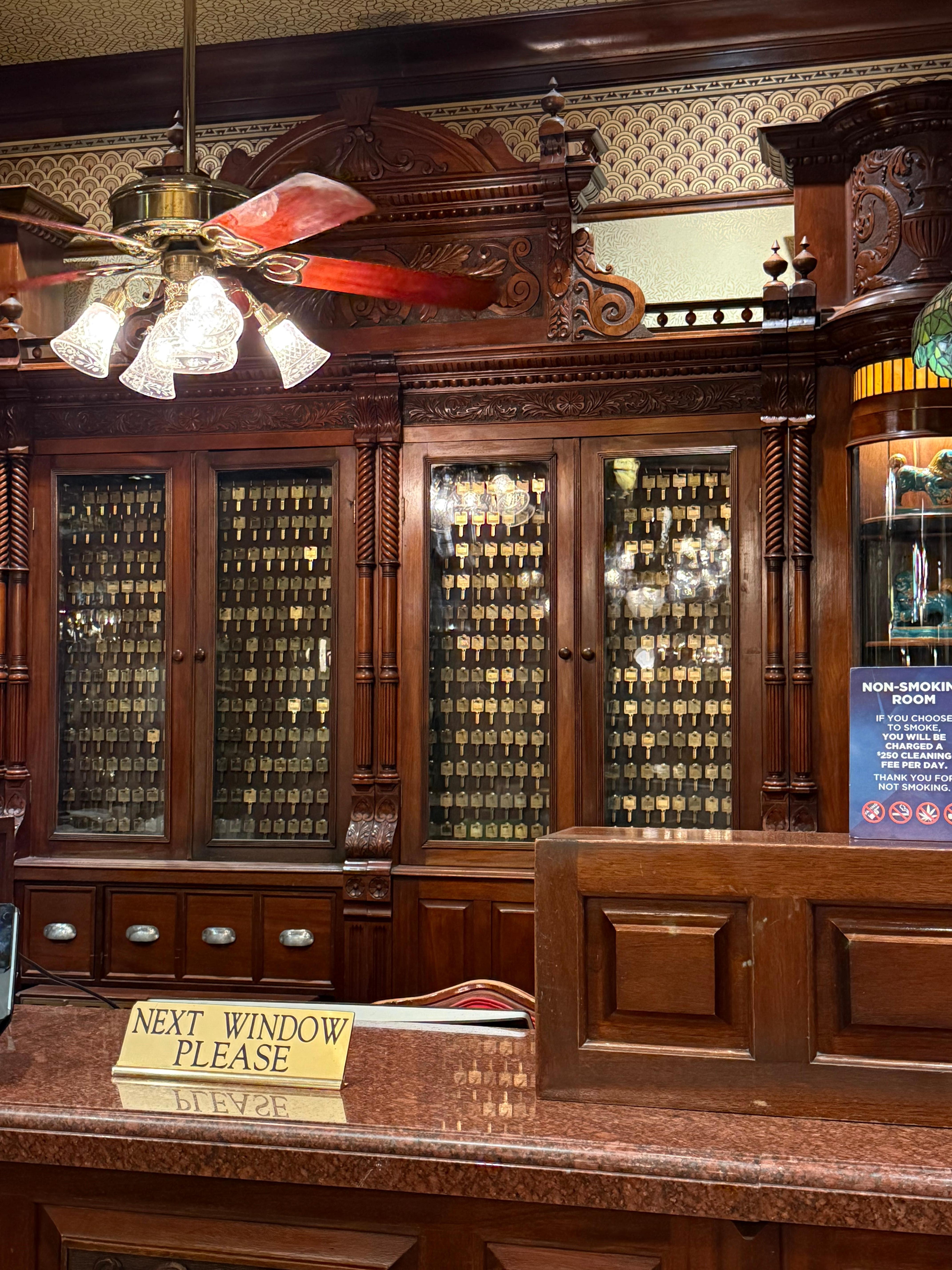 The room was safe, comfortable and clean. We love the old wood and stained glass in the casino and hotel.