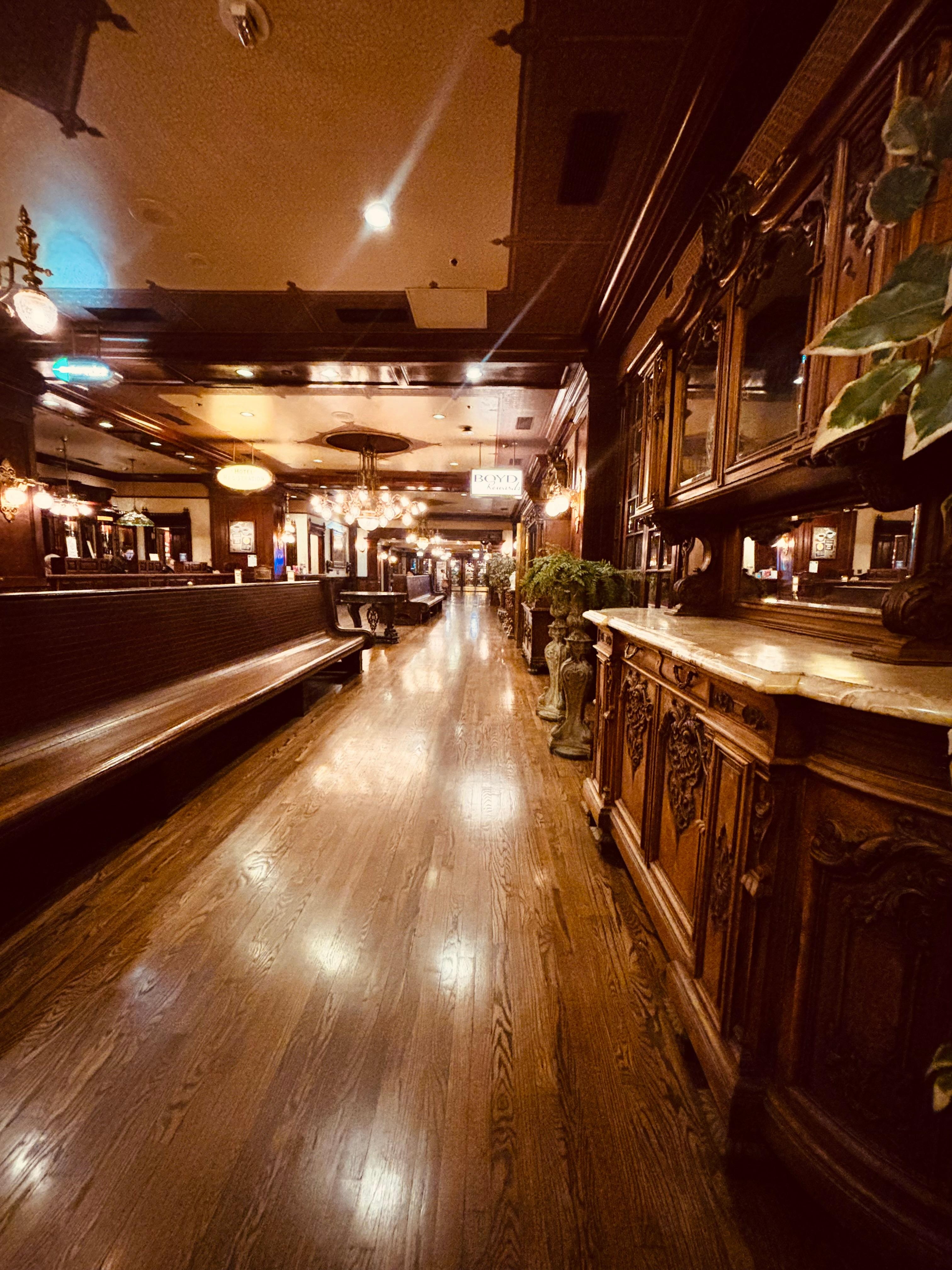 We were greeted by a pretty moody staff member upon checking in that surprised me with $180 in additional fees that were never mentioned as I was originally booking the hotel months prior. It was 2am as our flight landed at 12:20, so by the time we’d gotten our rental car it was 2am. We were exhausted. It took 30 minutes to get checked in. When I asked her about the additional fees, she just laughed and said “they didn’t tell you?”. The room was clean & spacious. The bathroom had no vent and got quite humid after showering. The hotel itself has a really beautiful interior. Gift shop was rarely open during its open hours, so you’d have to go elsewhere for water or snacks. Highly recommend walking over to the California for food and not eating inside of Main Street if you want something accessible. 10 minute walk from all kinds of delicious resultants, coffee shops, casinos, and Fremont St. Free parking across the street with your room key as validation.