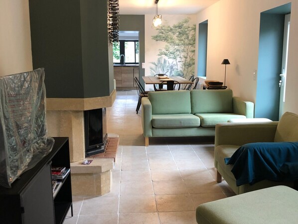 With its three bedrooms and open-plan kitchen-living room (flat-screen TV)-dining room, it's the perfect place to gather with friends or family, between Rennes, Paris, and Nantes.