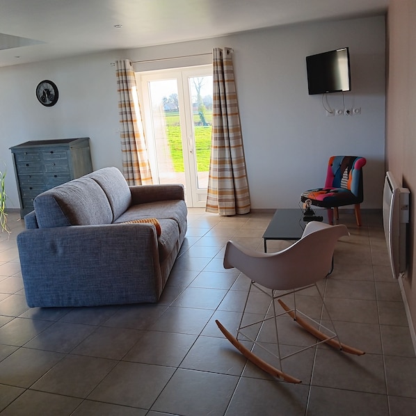 Fullstendig renovert hus i et anneks til våningshuset på slutten av 1800-tallet, er du på landet, i fred omgitt av dyr og flott natur. Gîten består av 2 loftrom med 2 senger på 90/190 hver. i første etasje, en stue og et åpent kjøkken, en sovesofa som lar sove for to personer til, et bad med dusjkabinett, en forfengelighet, en håndkle radiator og vaskemaskin, et toalett skille. Du finner i hytta alt du trenger for å lage mat og smake på deilige regionale retter. Du kan også unne deg bordfotball eller andre brettspill, det er en treterrasse med hagemøbler for å nyte øyeblikk av avslapning i en privat hage ved siden av hytta.