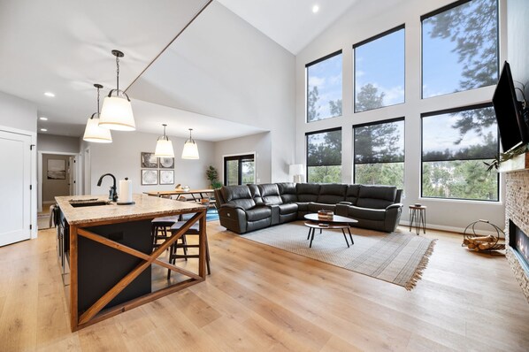 Welcome to the center of year-round recreational activities here at Copper Skies. A rewarding escape, peacefully situated in the heart of the Black Hills. Whether you're ATVing, snowmobiling, hitting the slopes, or just looking to get away. This 7 bedroom 5 bath newly built home offers plenty of space. Unwind sitting in the hot tub watching the sunset through the pines, and finish your evening gathered around the firepit enjoying pleasant conversation or just the sheer quietness of nature. The main level features the kitchen which presents an open floor concept connecting the dining and living room offering everything you would need to host guests, family, and friends. Directly off of the living room is the master suite encompassing a king size canopy bed and a walk-in shower enclosed with glass doors and a pebble stone floor. . There is also an additional King bedroom on the main floor as well. As you make your way to the top level you will find three bedrooms, two of which are king bedrooms. The third is a bunkroom that sleeps 7 total (one twin, 2 queens, one pull-out couch). The walk out basement boasts of entertainment and relaxation with a second living room and another dining table and chairs for endless hours of fun and games. The two bedrooms and bathrooms in the basement ensure a restful night sleep in the comfort of King beds. Minutes away from Deadwood, Terry Peak Ski Resort, and Spearfish Canyon with waterfalls, caves, and direct access to endless trails there is so much to offer. Ample parking is provided in and in front of the two-car garage. Copper Skies is in Powder House Pass, where you will have access to the community Clubhouse including a year-round outdoor heated pool and patio.