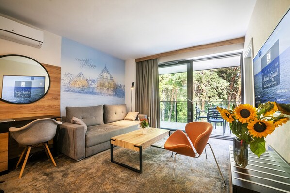 Das Appartement war sehr groß mit viel Stauraum. Die bodentiefen Fenster mit Blick über den großen Balkon zum Wald sehr schön. Der Schlafraum klein, aber angemessen. Wir konnten bei offenem Fenster schlafen, ohne dass das Zimmer nebenan auskühlte. Was uns störte, war der muffige Geruch, wenn wir ins Zimmer kamen. offenbar muss der Teppich dringend shampooniert werden. Wir haben immer erst einmal gelüftet.