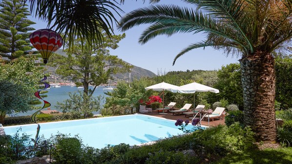 Svømmebassenget er 50sq. m med en dybde på 1. 60m. Sett bare 3 meter fra vannkanten, vil svømming være en fantastisk blanding av hagenes frodige grønne og den briljantblå Middelhavet. Bassengområdet er utstyrt med solsenger, solsenger og en utendørs dusj. Gjestene vil tilbringe lange late ettermiddager som ligger i solen, nyter en forfriskende drink og tar i nydelig utsikt over havet til Tranquil Bay og Nidri.