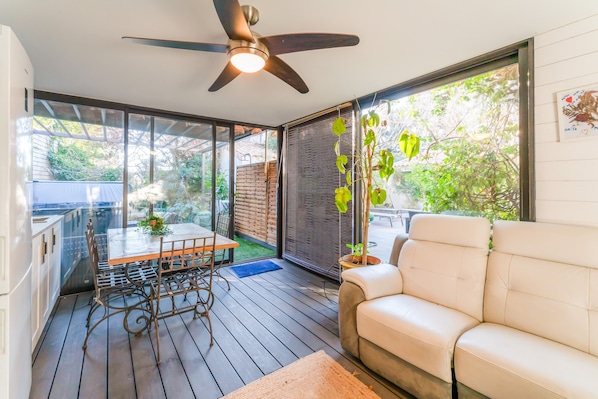 Step outside to enjoy your private covered terrace and outdoor shower. A private grill is provided for outdoor cooking. The winter garden and jacuzzi are available for an extra fee.