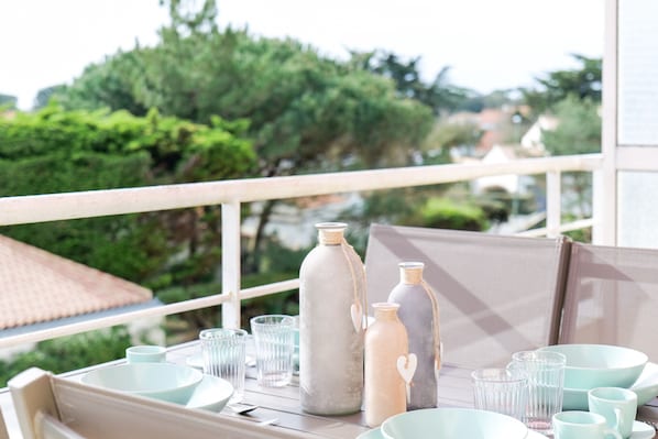 Beautiful two-star duplex apartment, located on the 2nd floor without a lift in a secure residence with a shared swimming pool. Private outdoor parking and a balcony equipped with a plancha to enjoy meals with family or friends.
