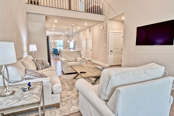 This wonderful new home offers: 2,300 sq. ft. of finished space,  It is tastefully furnished throughout. Sleeps 8.  Chef-inspired kitchen  with new stainless steel appliances, quartz countertops, dishwasher, microwave,disposal,  natural gas range!   Clothes washer and dryer in home for your use.
