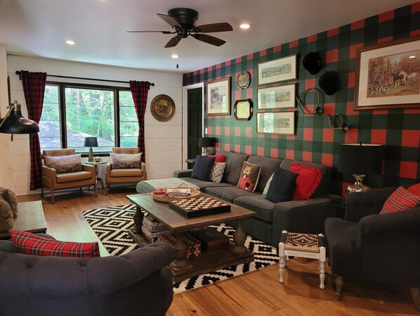 Nyt sesongene i Laurel Highlands på Fox Haven Cottage! Fox Haven hytte ligger på 1. 6 dekar med stor Hemlock-skogvokst land og er omgitt av beskyttet naturreservat. McCullen Run-strømmen er hjemmet til innfødt ørret og går gjennom eiendommen og skaper en naturlig tursti langs bredden. Den sjarmerende historiebokhytta er sjarmerende på utsiden med en steinrute, terrasse og peis, og romslig på innsiden som komfortabelt sover 10 på senger. Hytta ble renovert i 2016 kledd med rustikk skarp hvit skipslapp og beiset furuplate. Kjøkkenet er fullt utstyrt med en elektrisk koketopp med stekeovn, fjernstyrt rekkevidde hette, avhending, gulvvarme, vin chiller, og vannrensing i hele huset. Slamrommet har et gammelt biljardbord og stoler for å slappe av. Stuen har et aktivitetsbord for brettspill og puslespill, en 50 ”smart-TV (wifi kan) og peis. Hvert vindu har fantastisk utsikt over de naturlige omgivelsene. Det store takdekket gir fantastisk forhøyet utsikt over eiendommen til fjellsiden, bekk og stjernehimmel. Det er virkelig en skogshavn i hver sesong!