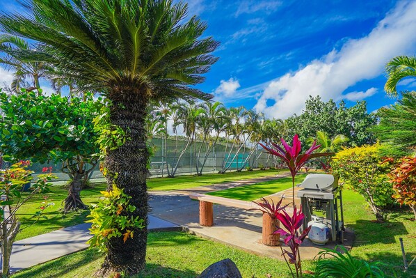 Tropical hideaway with easy beach access, alfresco patio, pool & tennis