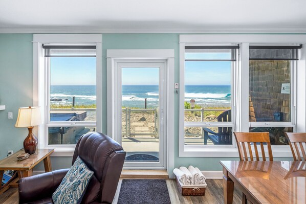 Når du slapper av eller serverer i denne romslige leiligheten, vil gjestene oppleve uovertruffen utsikt over Stillehavet. I tillegg gir det mulighet til å se soloppgang og solnedgang fra varm, avslappende vannet i din egen private badestamp ligger på havutsikt patio Sand Dollar.