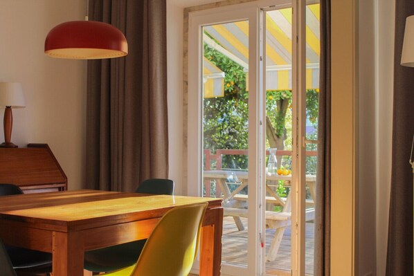 Our Bela Vista apartment has a very bright living room, with direct access to the terrace and garden which has a view on the Lisbon Pantheon. There is a fully equipped kitchen with a coffee machine, kettle, toaster, microwave, and everything you need to prepare your meals. We are sure you will feel right at home!