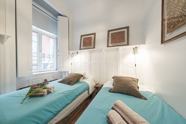This is beautiful apartment in a historic building in Baixa Pombalina with a lift, with a large living room, 2 bedrooms, 2 bathrooms (one en-suite) and a balcony. It has internet access, TV, air conditioning (hot and cold) in the living room, fans in the bedrooms, central heating, towels, sheets, amenities, hair dryer and iron.