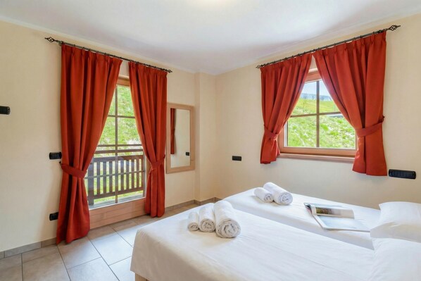 De allsidige soveordninger gjør denne hytteleiligheten til det perfekte valget for å imøtekomme store grupper og venner med opptil 7 personer. Soverom 1 • Et avslappende og fleksibelt rom • Møblert med to enkeltsenger, en garderobe og en balkong Soverom 2 • Et fleksibelt familierom med Twin Joinable senger + 1 enkeltseng