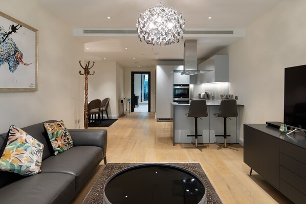 Large contemporary complex very near a bus line into the tourist area. The tube stops were not as convenient, but we found a nice restaurant and convenience store when we used the tube. The furnishings appeared clean and attractive and the beds were comfortable, although smaller than queen size. We were pleased with first impressions, but a bit disappointed in the preparation that had been made our stay. We found damp rugs in the washer, the washer water container was full, and a bag of trash by the door, as if cleaners had been rushed to finish before we arrived. (We arranged to gain entry about 1.) The biggest problem was we had no hot water the first night; apparently the boiler hadn’t been turned on. (The concierge for the building sent an engineer in the next day to get it working.)