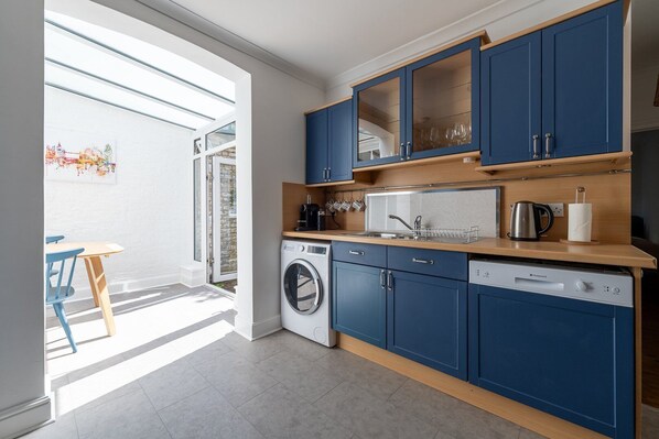 The kitchen includes appliances, essential cookware, and crockery to fulfil any culinary requirement. A washer is available for your laundry needs.