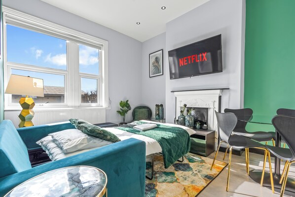 Denne leiligheten ligger i bydelen Hammersmith and Fulham i London. Thames River og Kensington Gardens er verdt et besøk hvis du vil oppleve vakre naturomgivelser, men hvis du heller vil få med deg noen av områdets populære attraksjoner, kan du ta turen til Natural History Museum og London Eye. Du kan se om det skjer noe kult på Stamford Bridge stadion, og hvis du har tid, bør du også få med deg Royal Botanic Gardens, Kew, en svært populær attraksjon. Se vår reiseguide til London