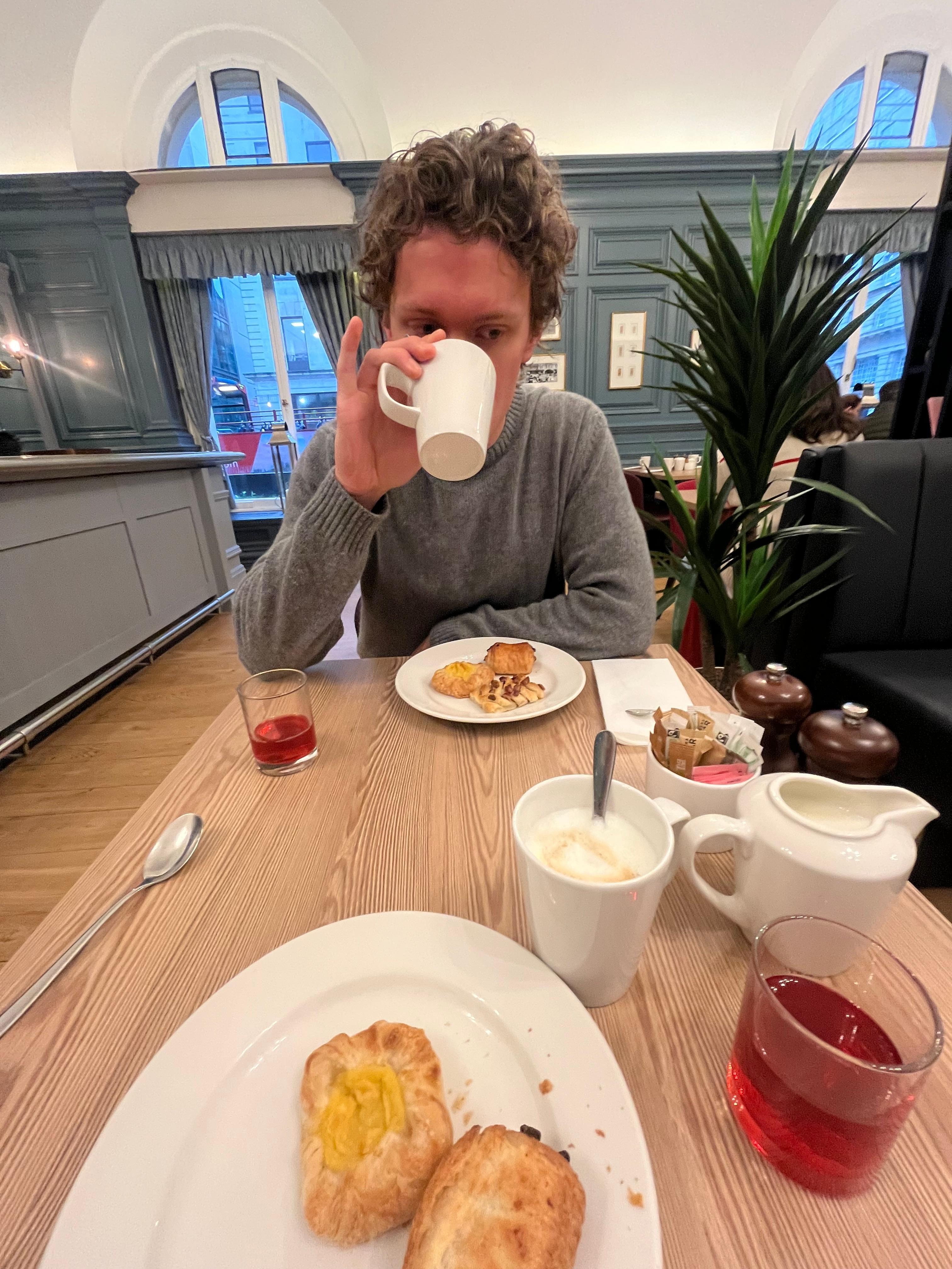 Det var også engelsk frokost, med medisterpølser og altfor lite stekt bacon.