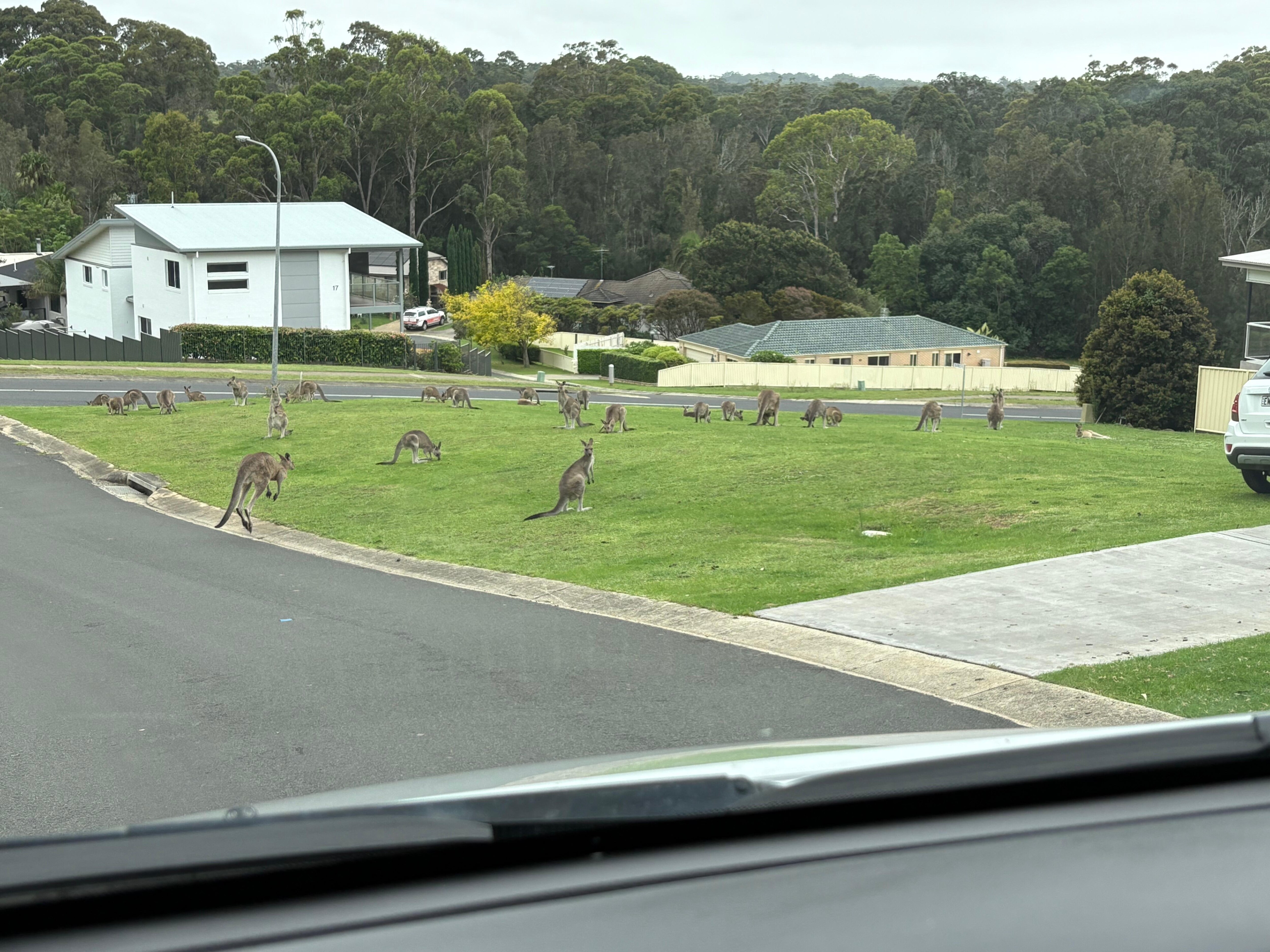 ... Alex ... Kenguruer i hagen om morgenen er veldig spennende, sønnen vår var så glad for å se dem.