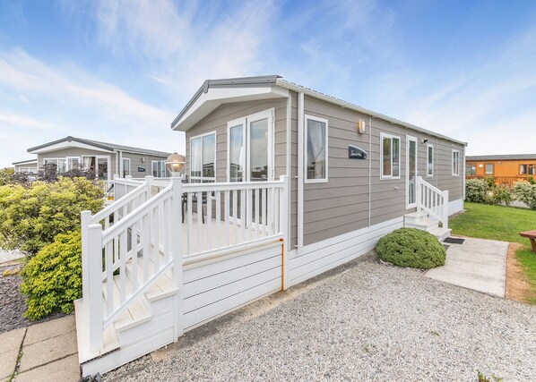 Luxurious 14ft-wide holiday home. One double with en suite W.C. and two twin. Shower. Open plan lounge/kitchen/dining area with French doors opening onto decking with quality garden furniture. No pets.. Looe Coastal Retreat is part of our exclusive Bouja Luxury Caravan Breaks Collection. Situated less than a mile away from the award winning Cornish coastline with its unblemished beaches and crystal blue waters.