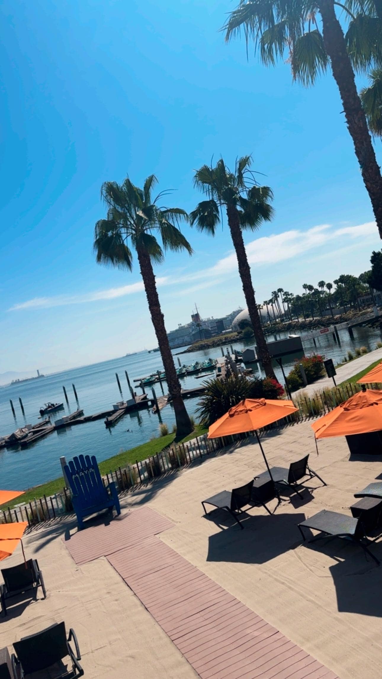 Hotel Maya was amazing. When we checked in, the staff was very friendly and welcoming. We were staying with family and asked to be close together which they accommodated with no problem. We had reservations at the Queen Mary for dinner and walked there in about 10 minutes. The staff told us the best way to go. It was a pretty and safe walk. There was a nice place to sit and have drinks right by our rooms in building 4. We had breakfast at Fuego which was right next to the water and a great location. We were headed to Catalina after our stay and it took us about 5-10 minutes to get to the ferry. Our beds in the room were comfortable and the AC was great! Our balcony faces the parking lot but we didn’t mind. It was very quiet. All of us loved Hotel Maya and would absolutely stay here again.