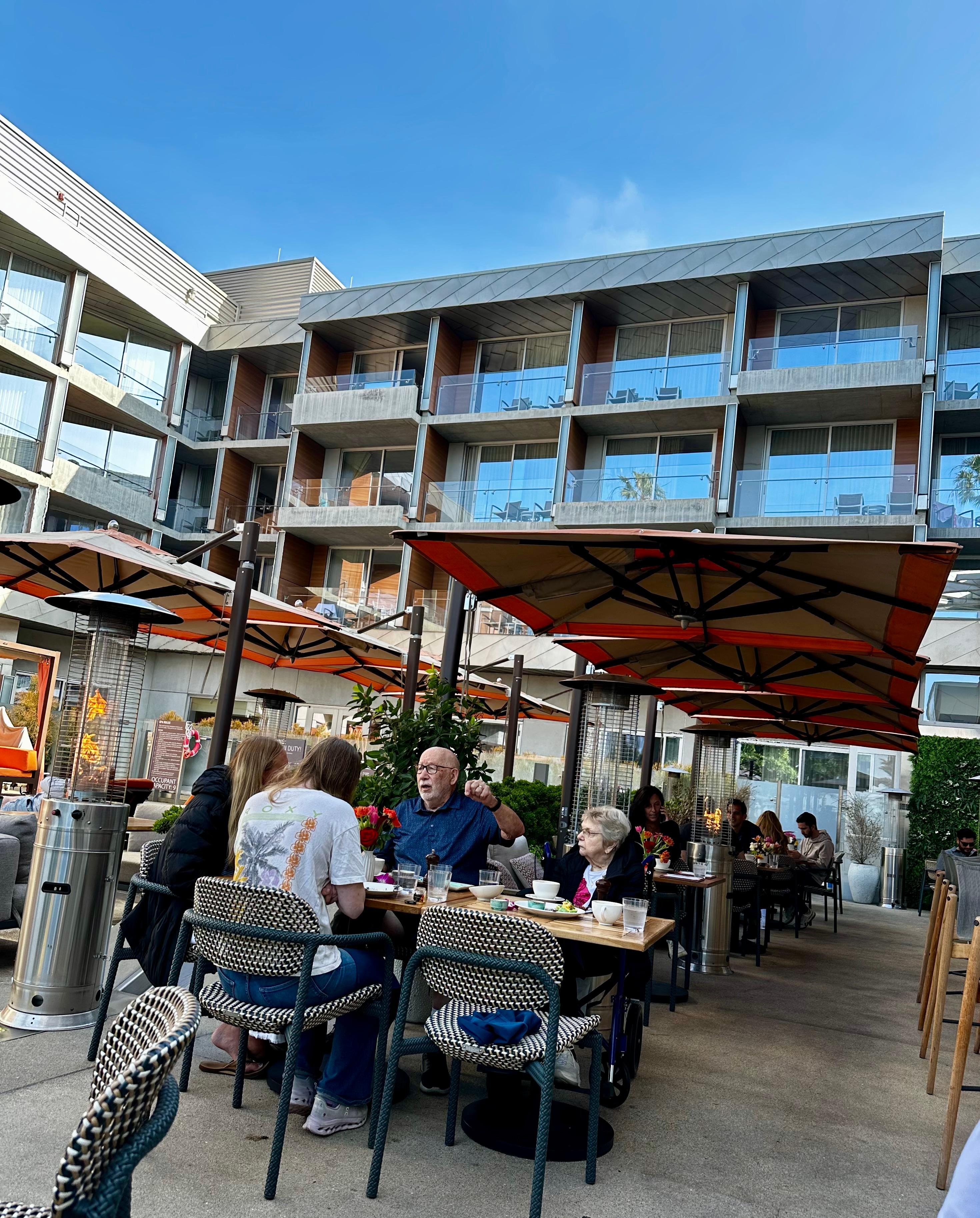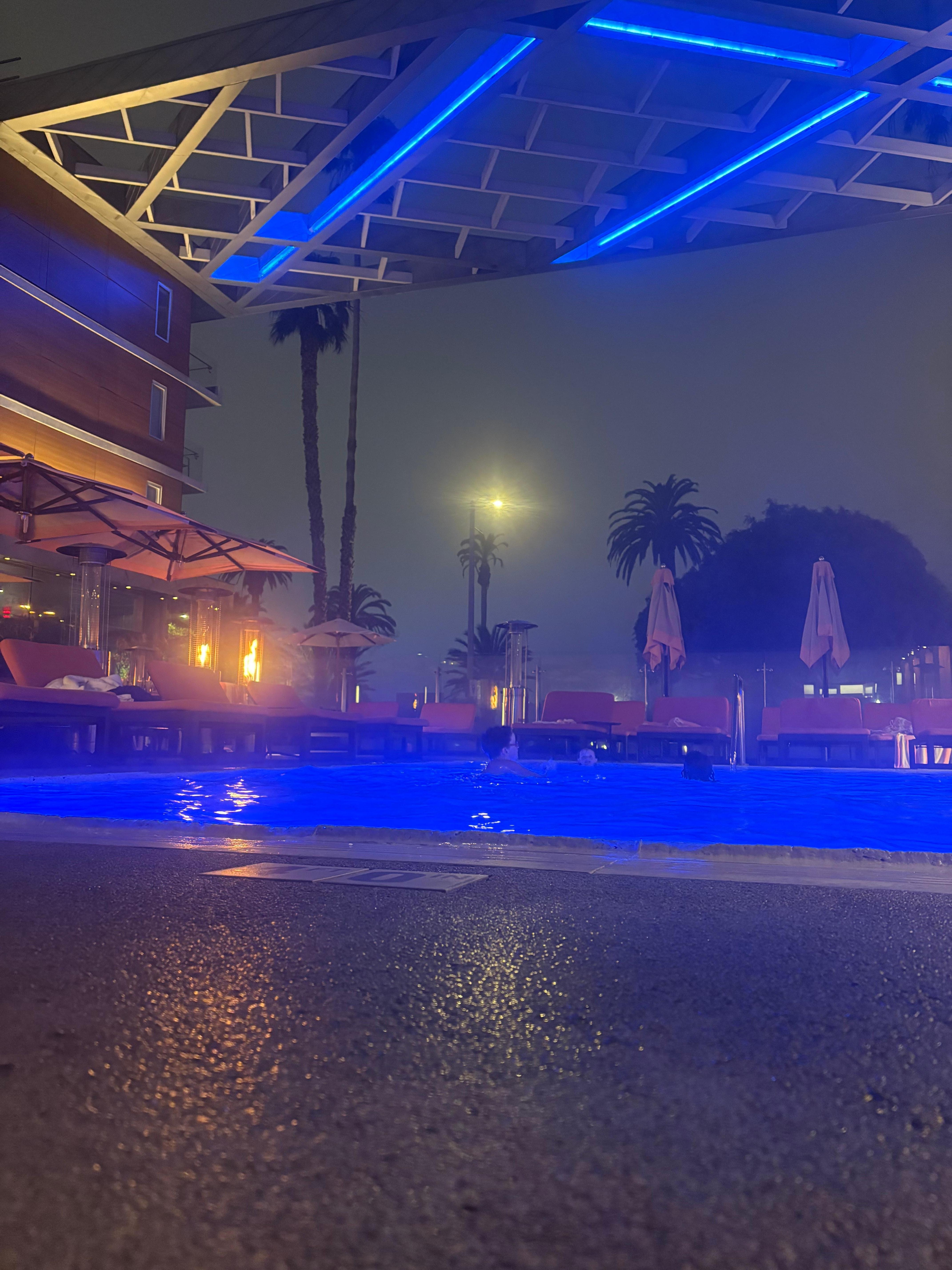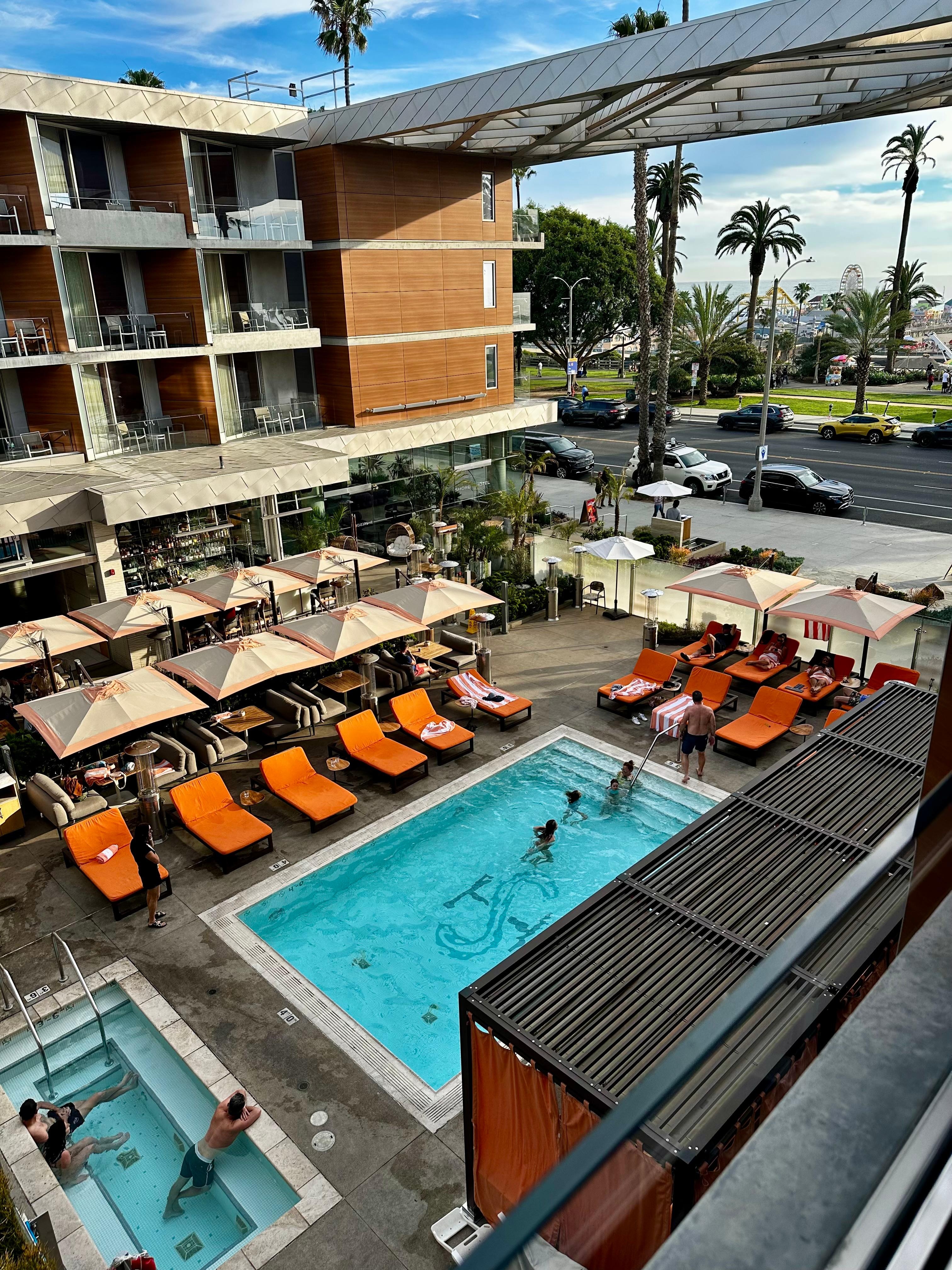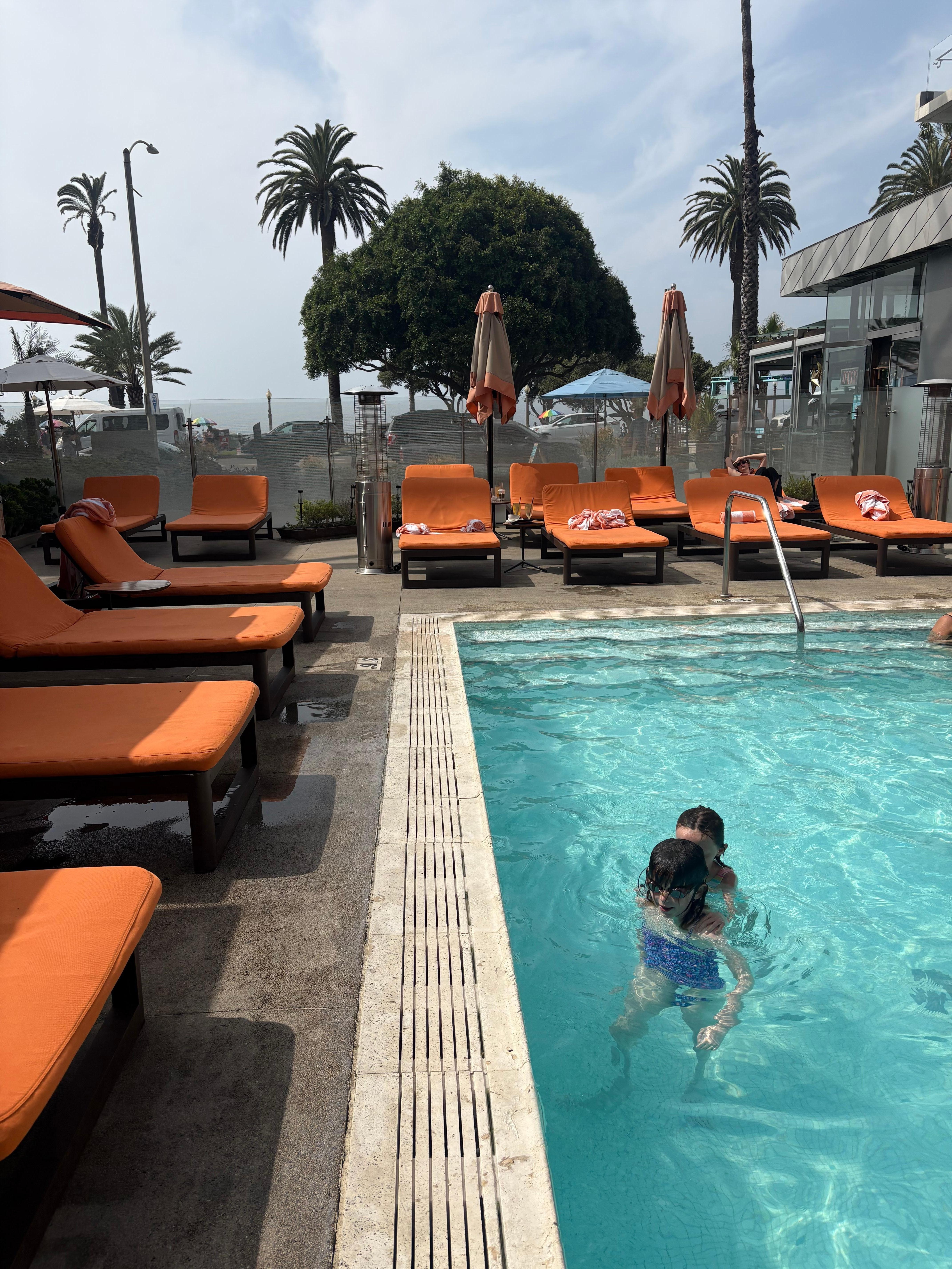 This is a very nice hotel right on the Santa Monica beach across the street from the pier. The hotel is spotless. The staff was fantastic. They gave me and my friend a glass of champagne when we checked in . The pools were heated. It was such. Dreamy place to stay.