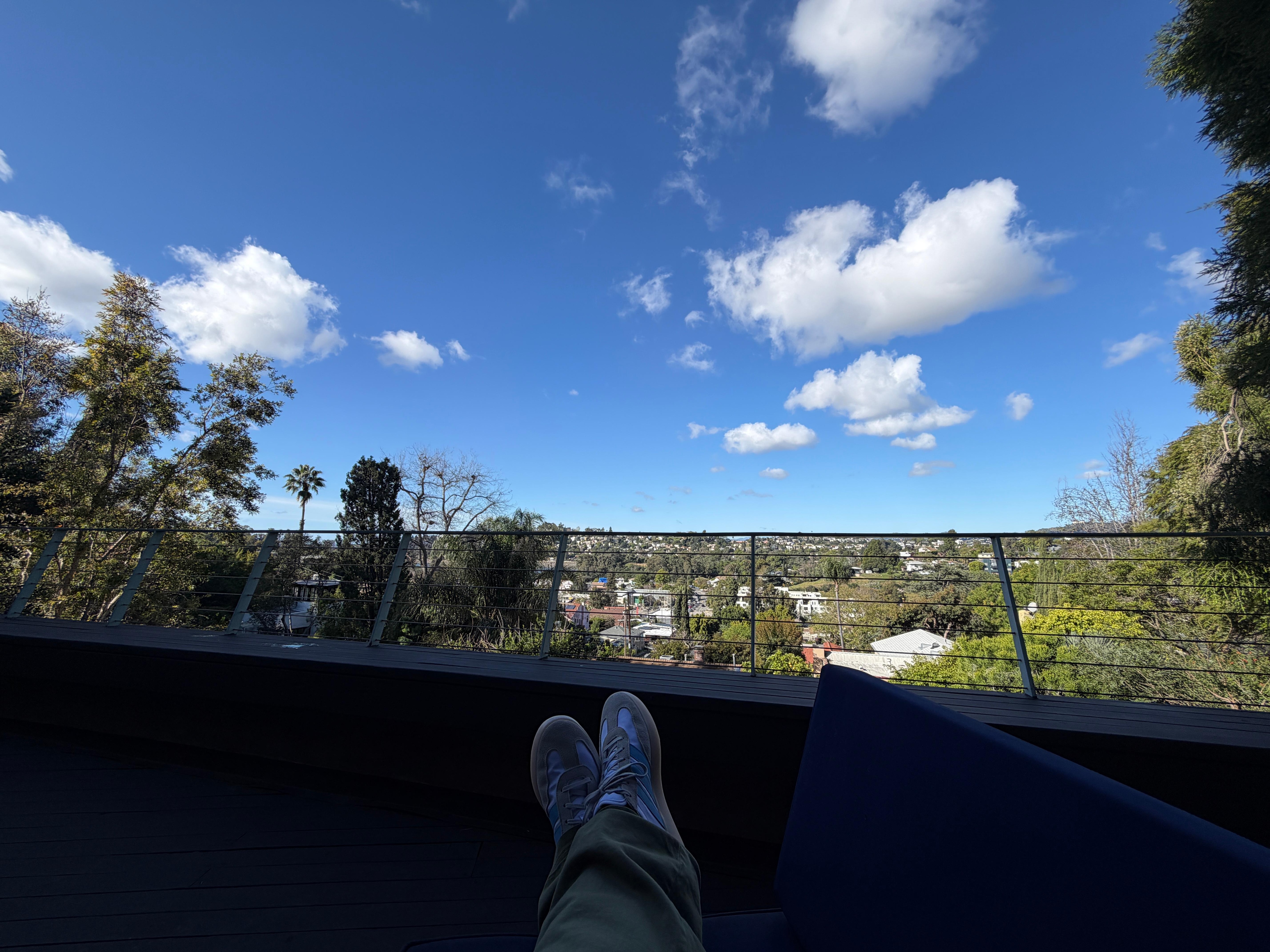 This perfect fully enclosed first-floor suite features two separate bedrooms with queen-size beds, each with their own sliding glass entrance to a gorgeous patio overlooking an even more beautiful view of Silver lake, Griffith Observatory and the Hollywood sign.