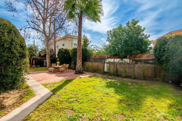 - Private backyard with lush greenery